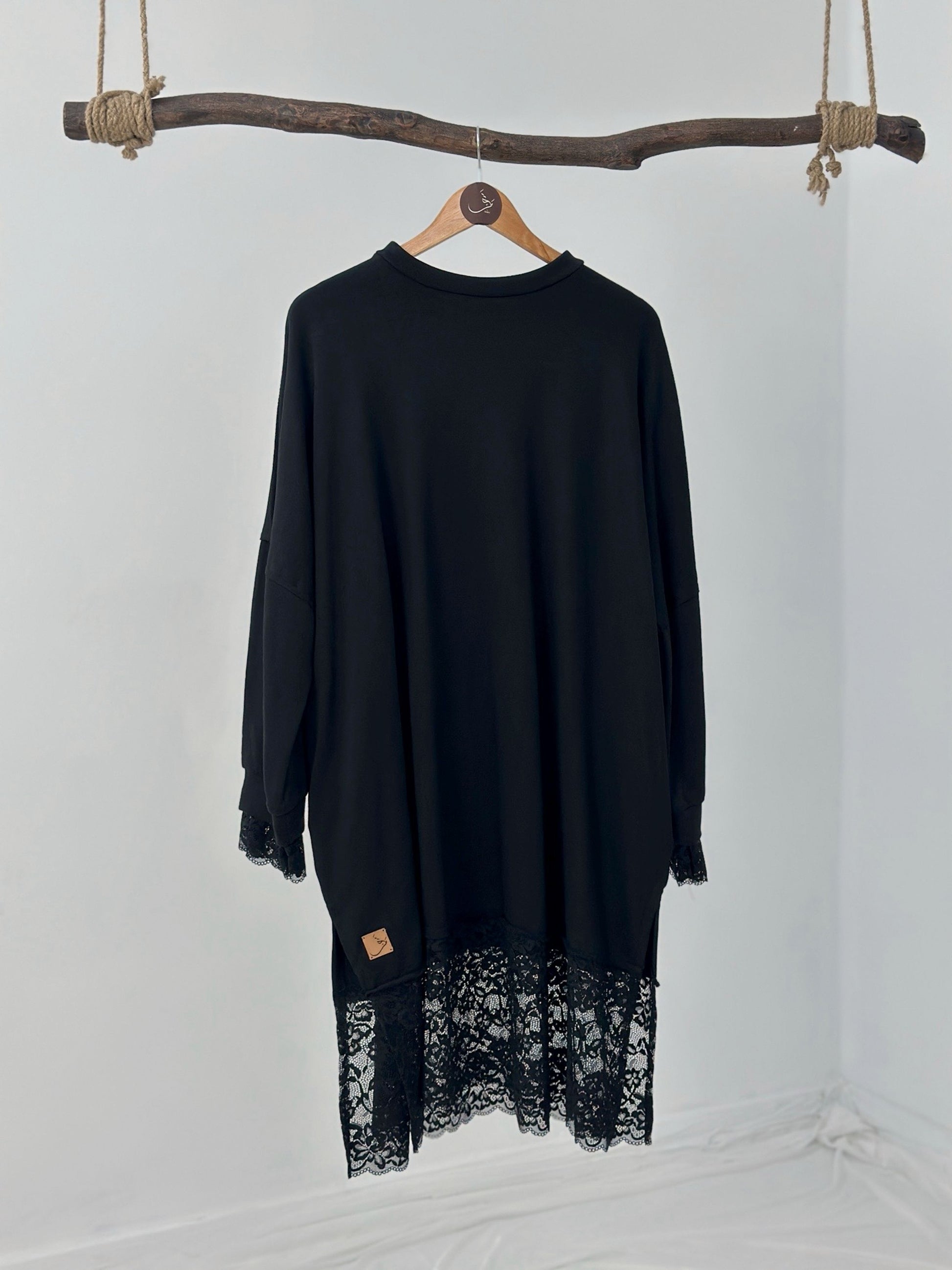 مكوّنة من سويت شيرت واسع مع حافة دانتيل أسفل القطعة،