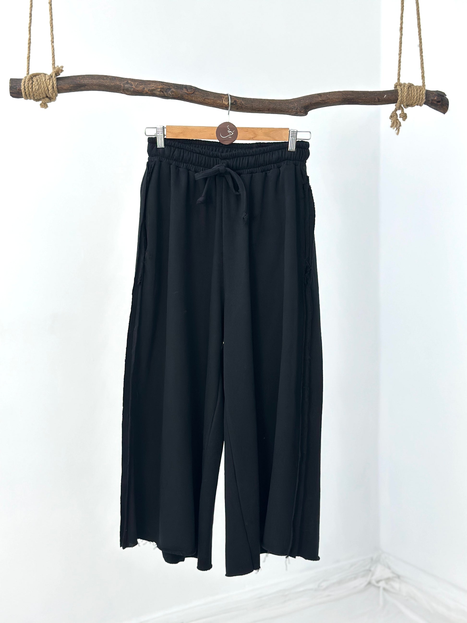 معها بنطلون ملتون بقصّة مريحة ووسط مطاط ..تصميم In-finish بدون خياطة عند أسفل الرجل