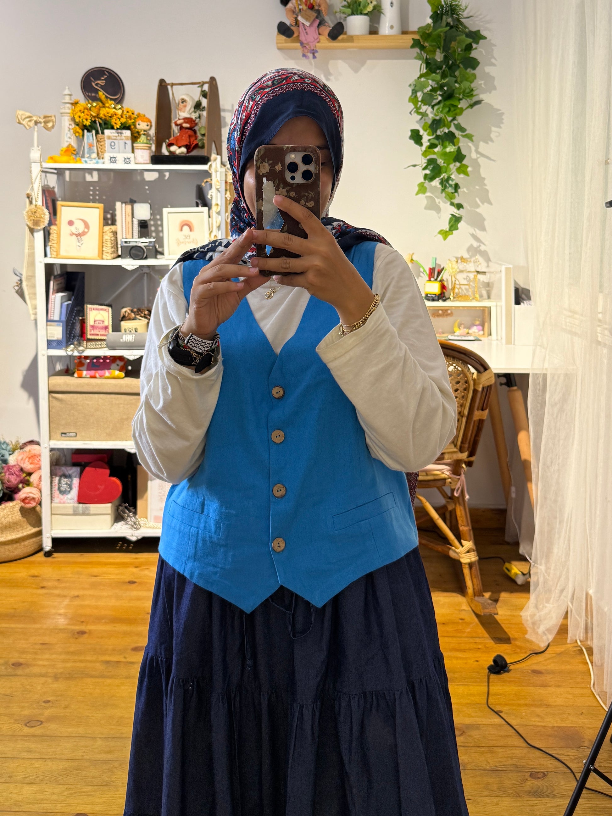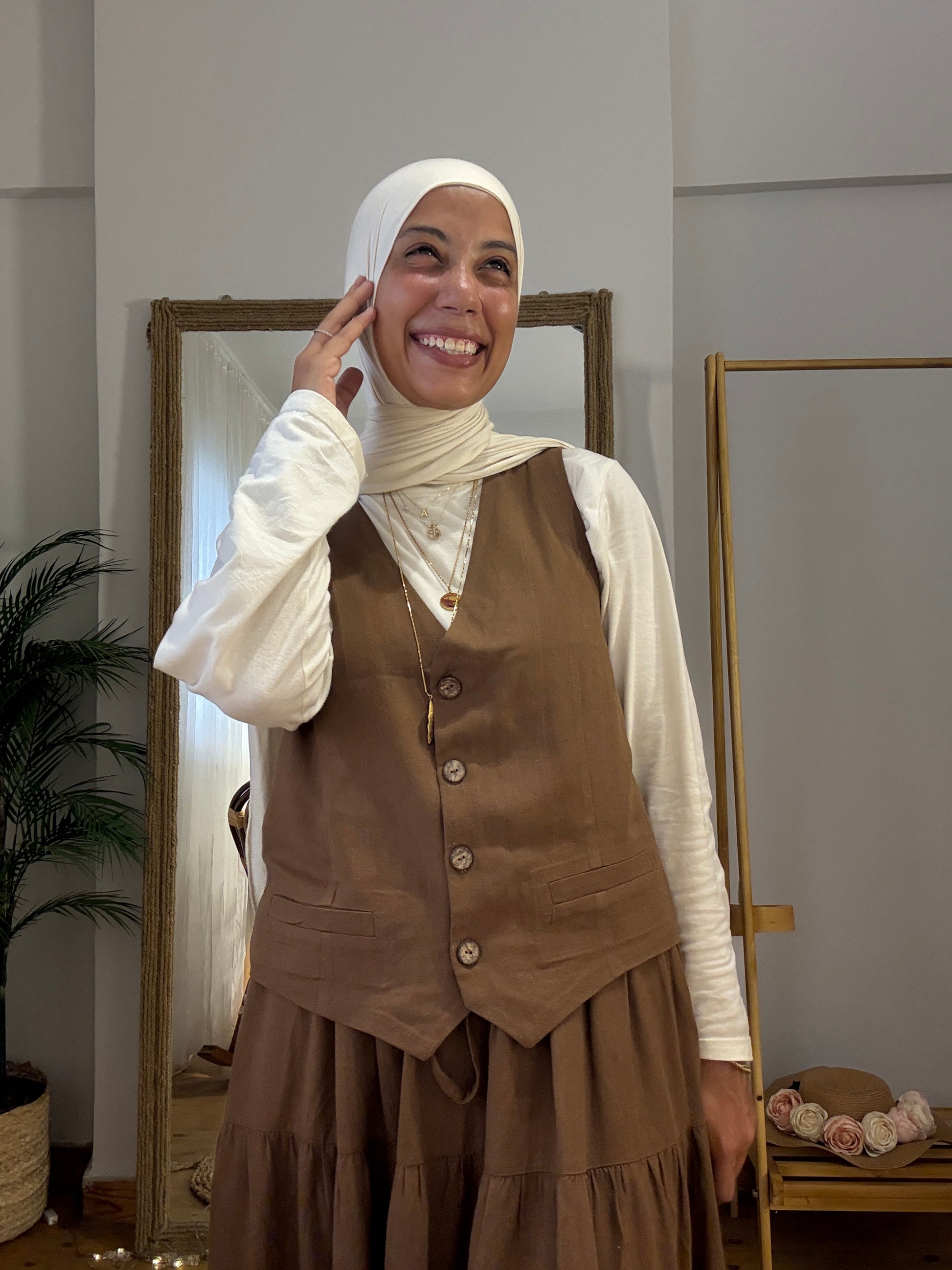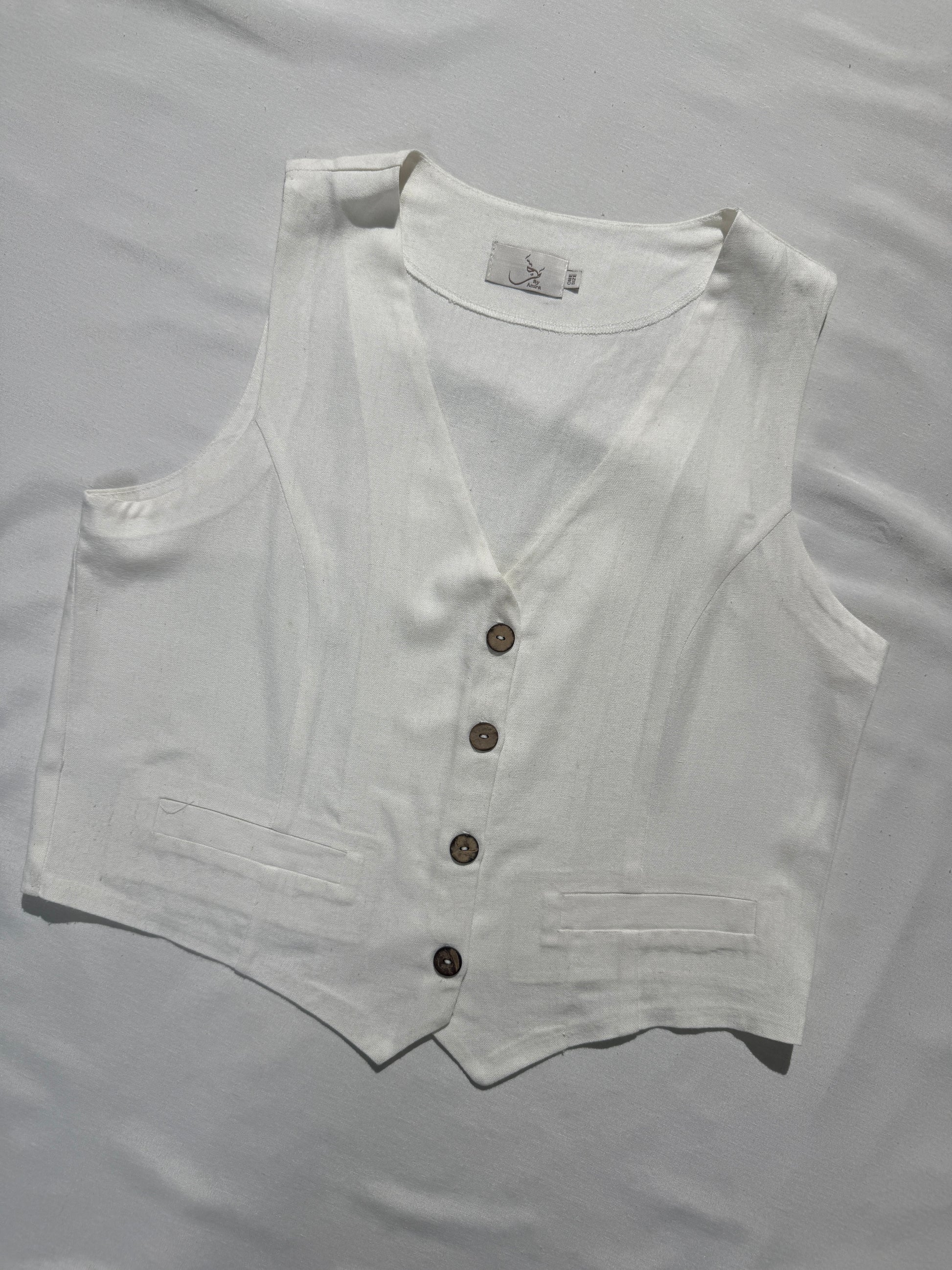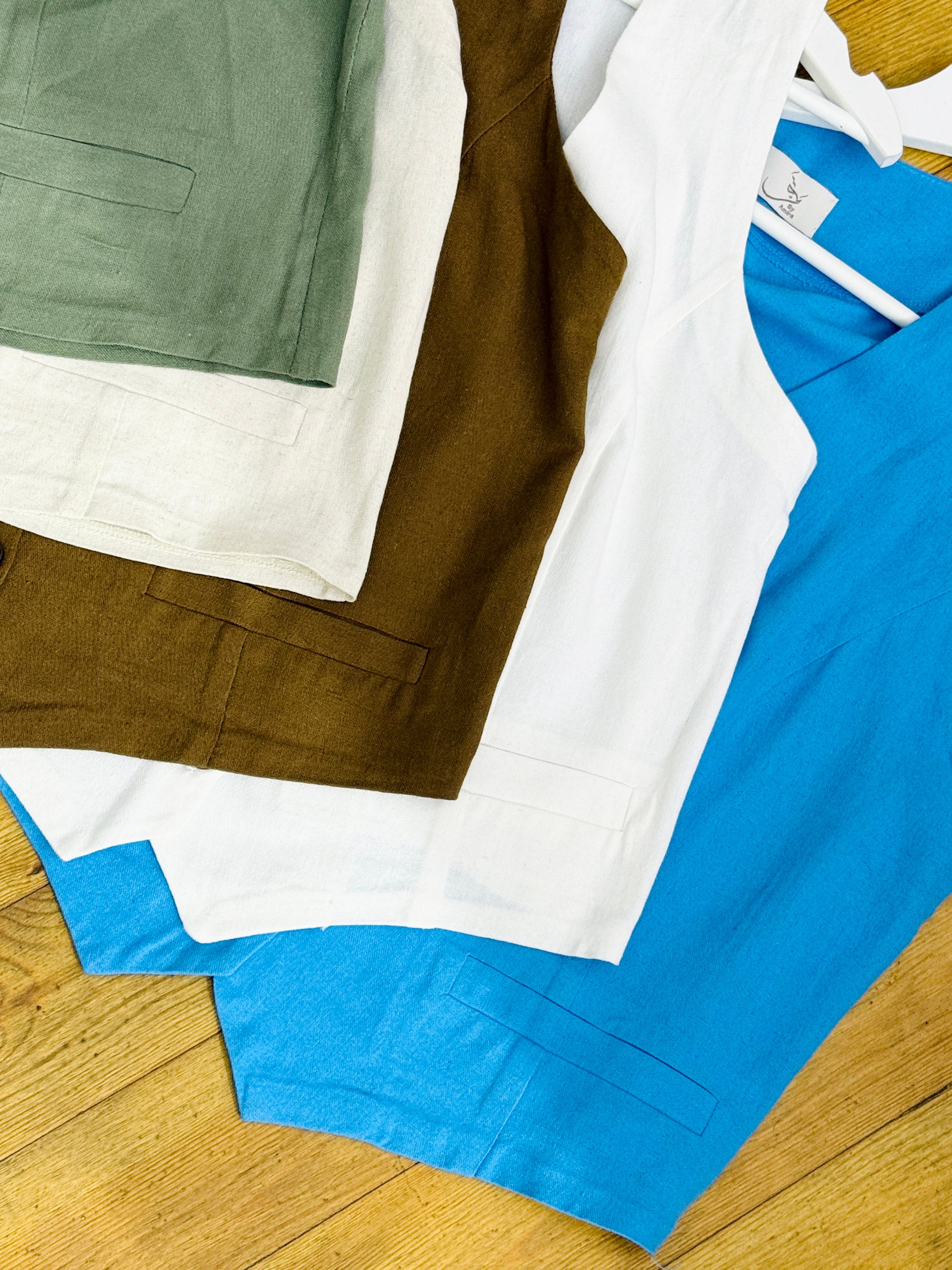 A chic vest made from raw linen fabric – simple, elegant, and versatile.