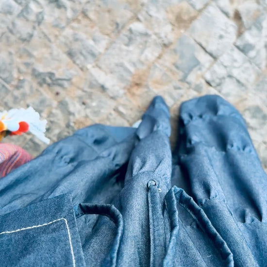 جيب واسعة بأدوار، بخامة جينز خفيفة ومريحة للحركة.