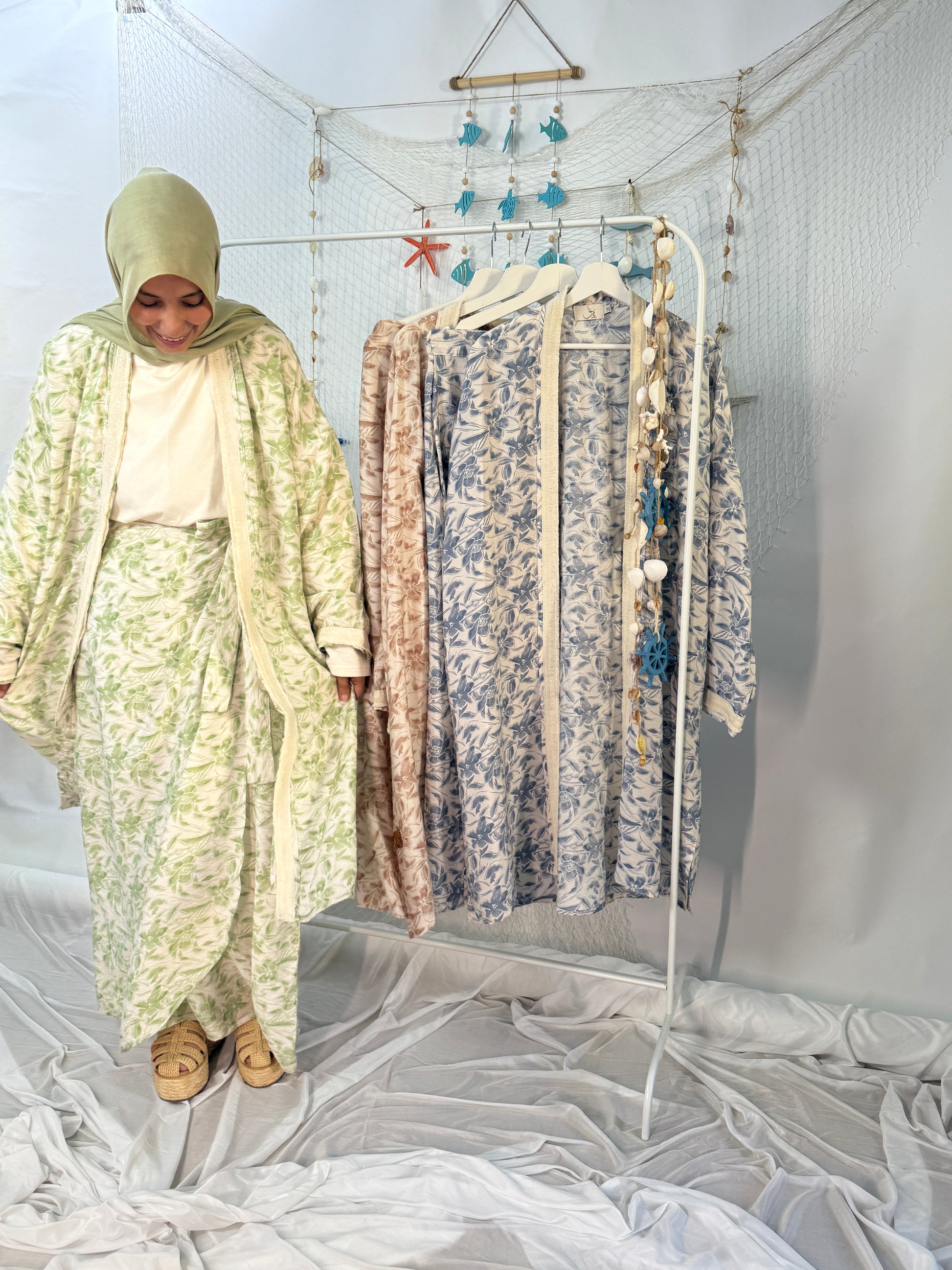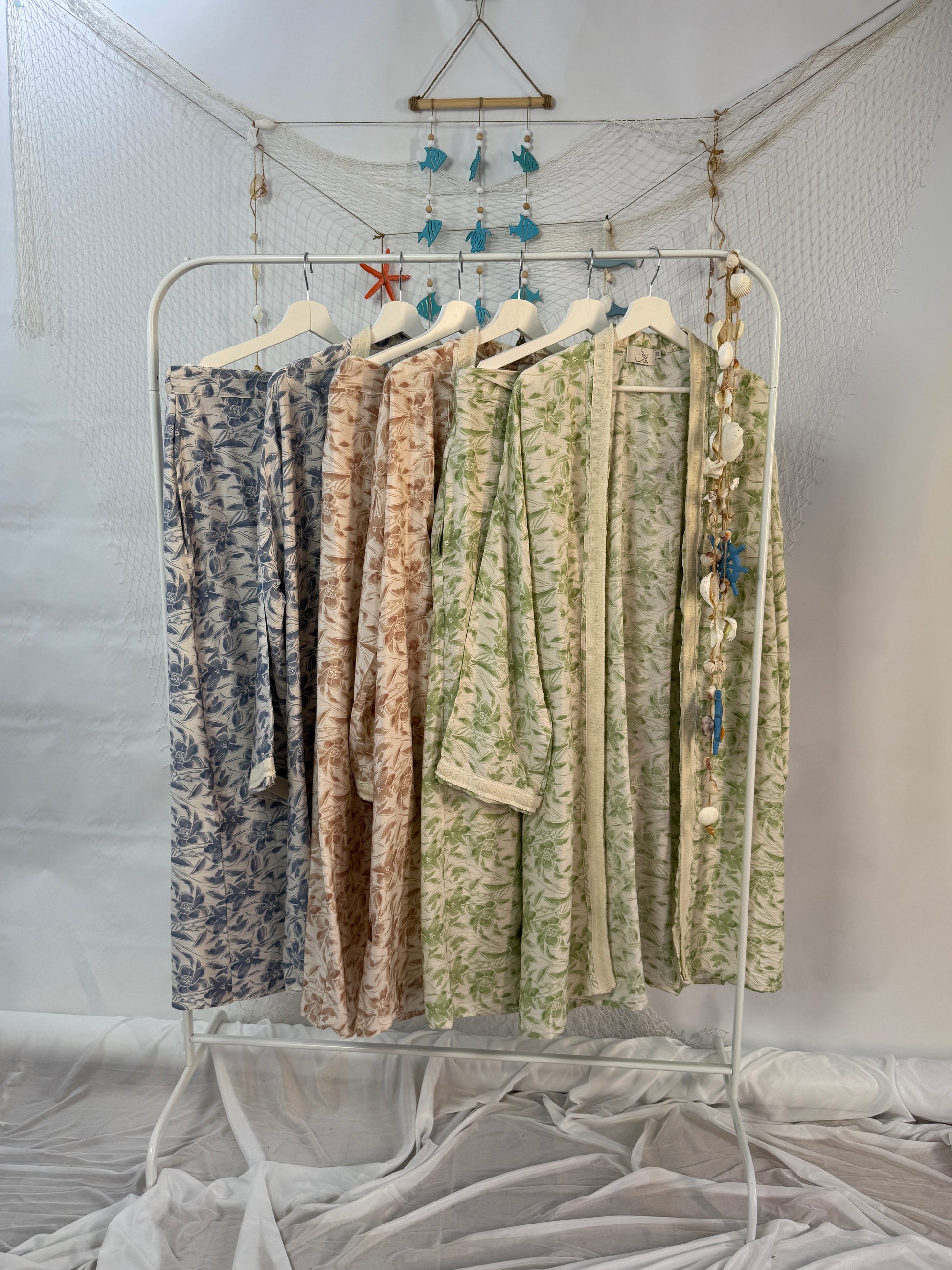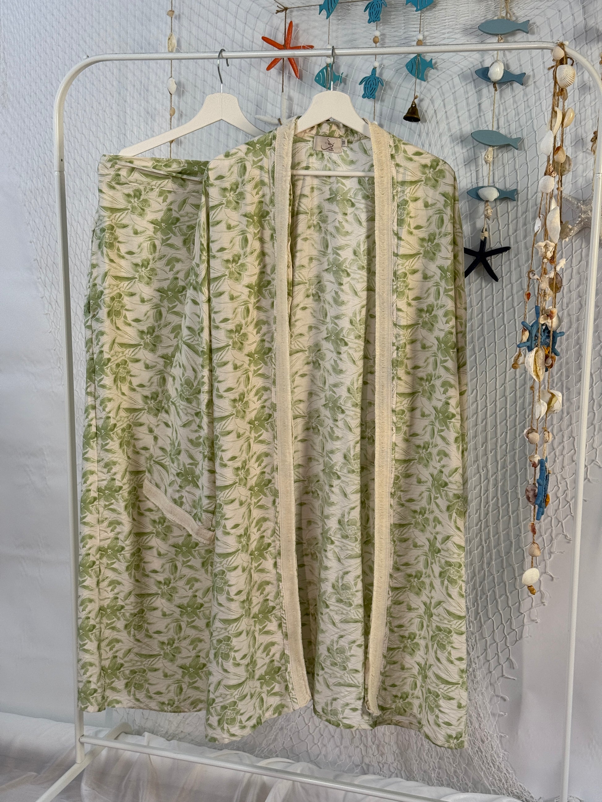 Step into summer with this effortless matching set – a floral cardigan paired with a flowy skirt, both made from breathable cotton.