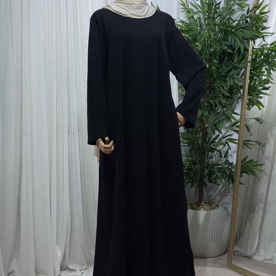 A minimal, streamlined dress designed for everyday comfort and a polished look. A versatile essential that can be worn on its own or layered under abayas and cardigans.
