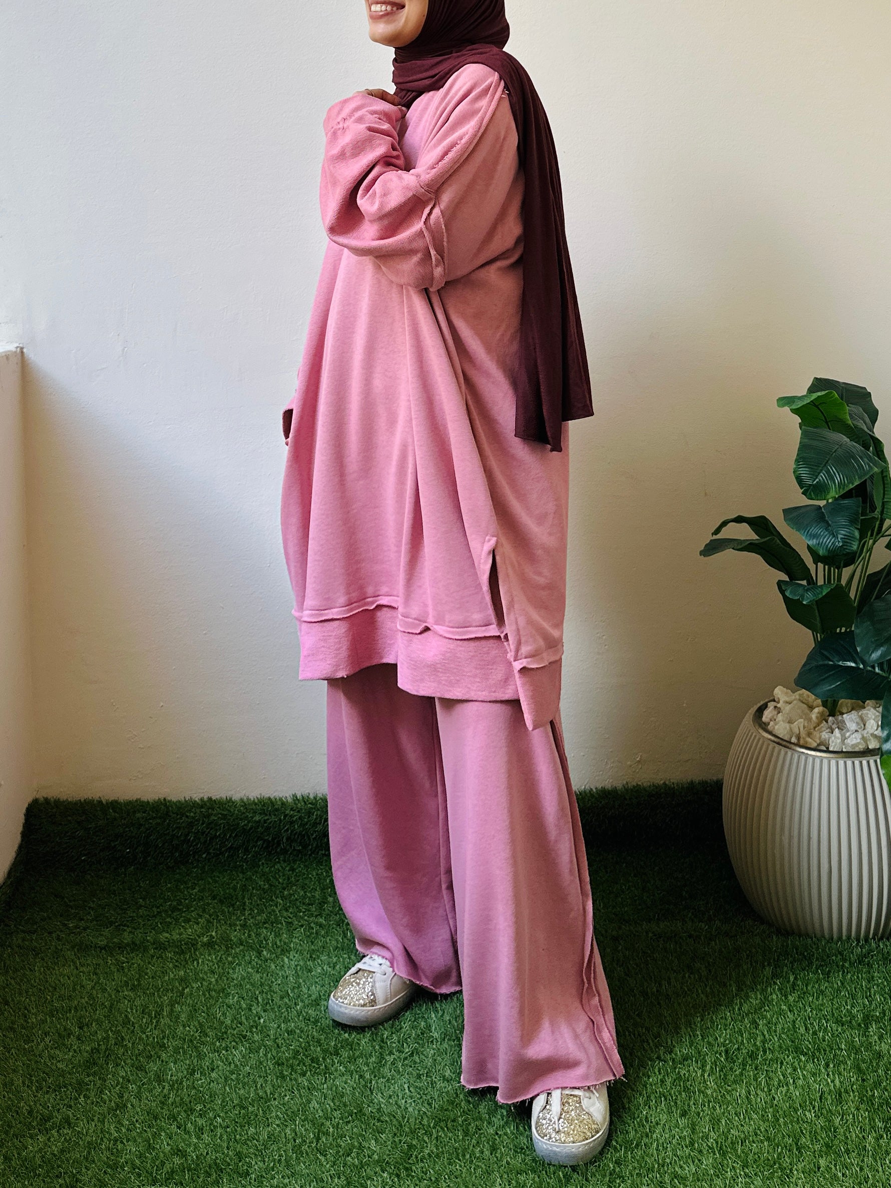 ست ملتون مكوّن من سويت شيرت واسع وبنطلون بنفس الخامة، بتصميم مريح ومناسب للاستخدام اليومي.