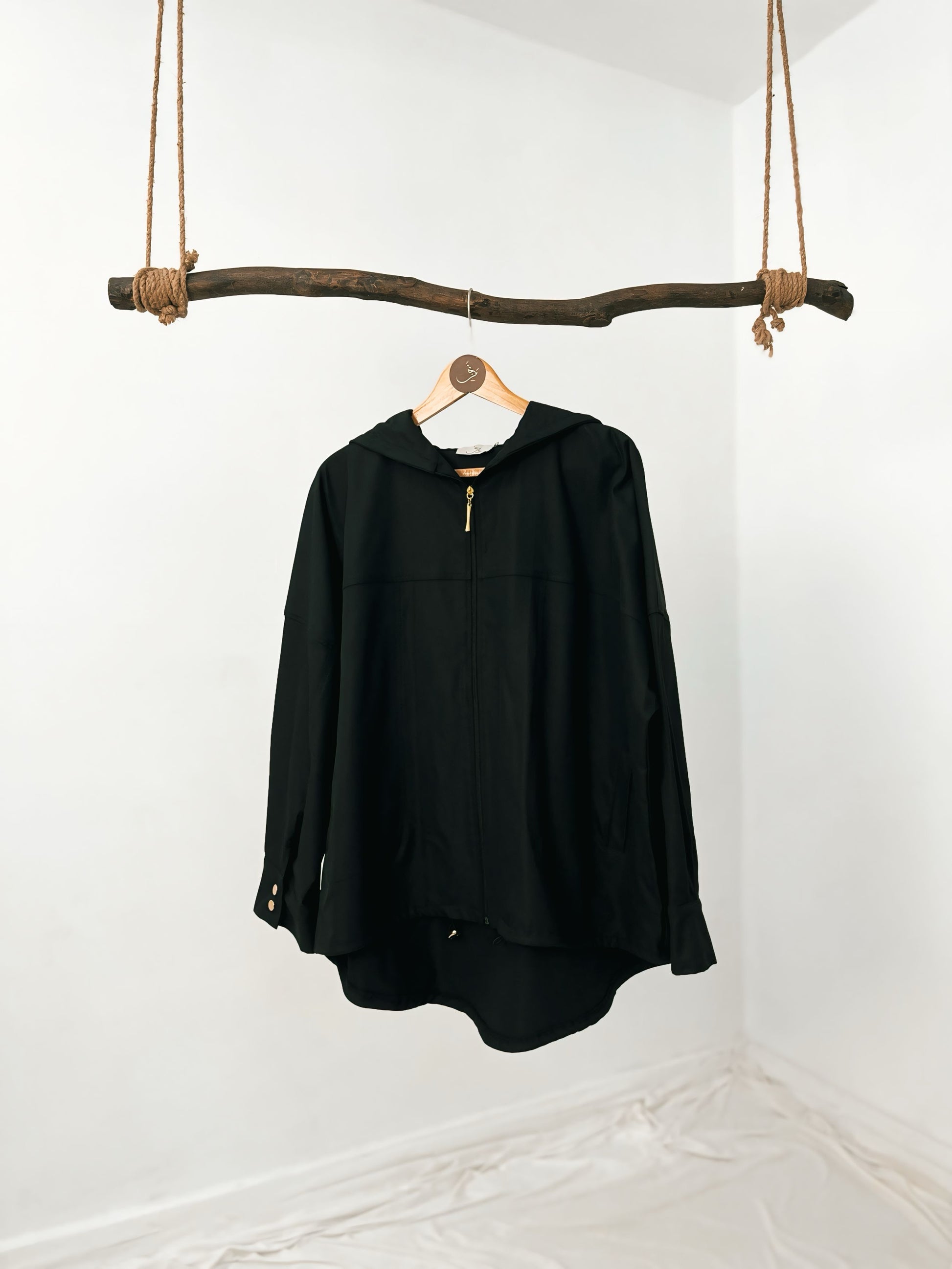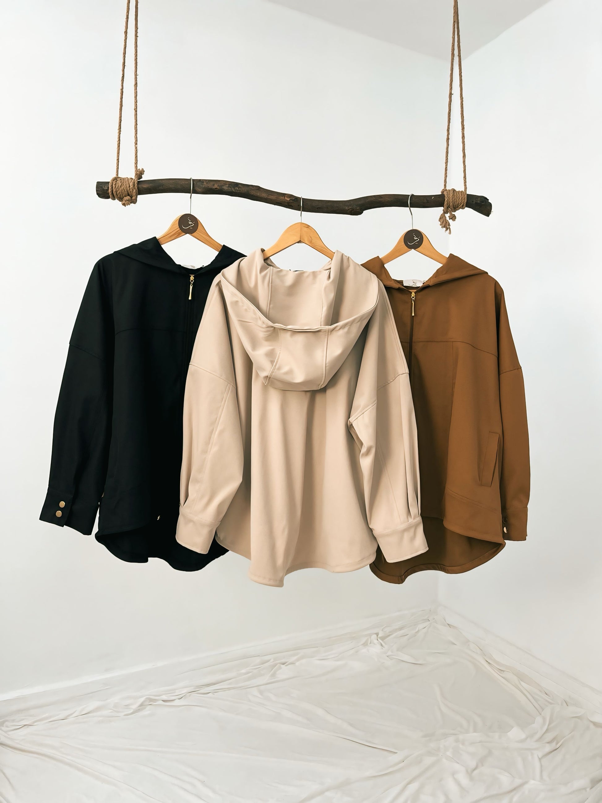 هودي جاكيت بقصة أوفر أوفر سايز، تصميم عملي ومريح للاستخدام اليومي.