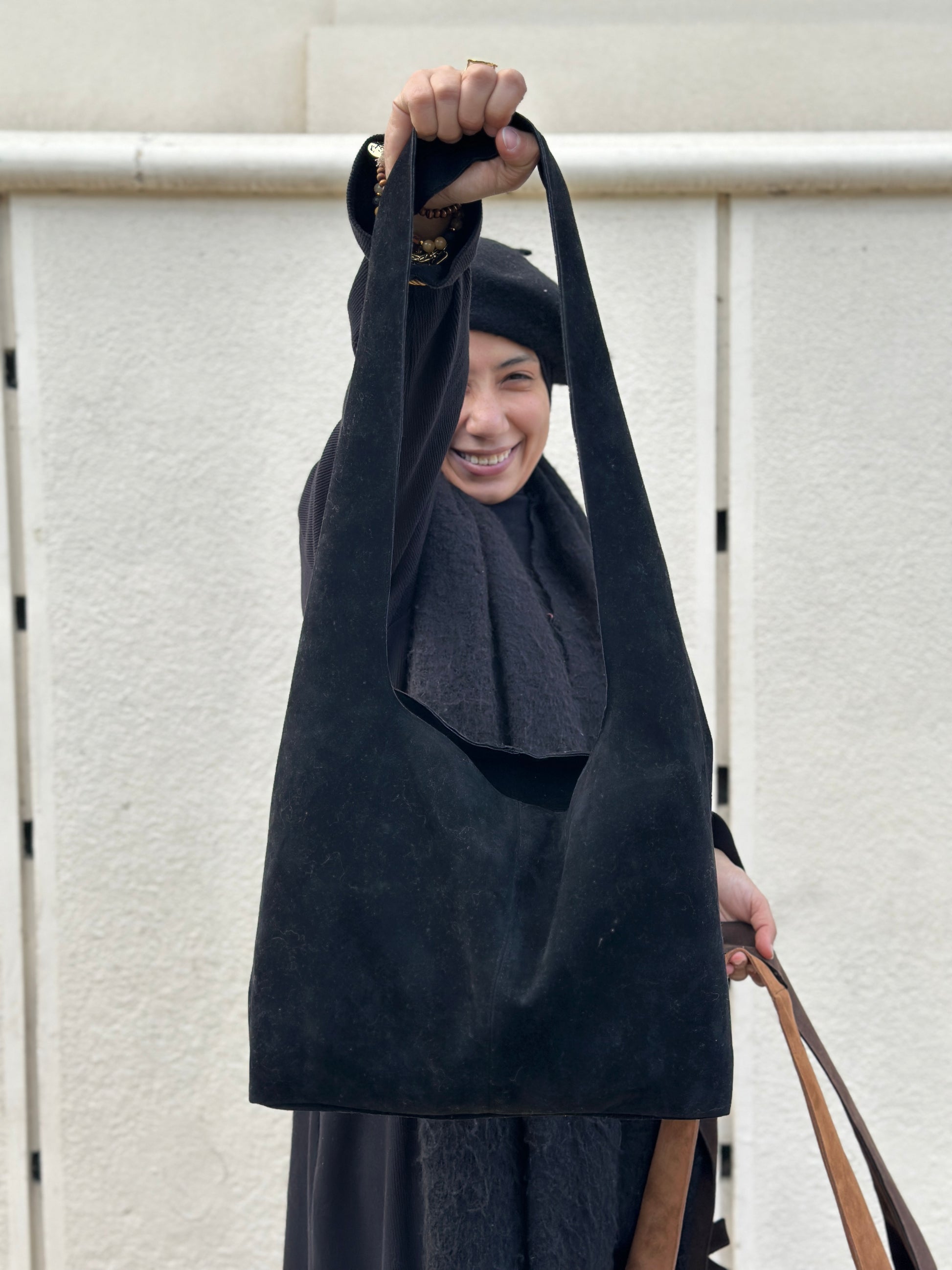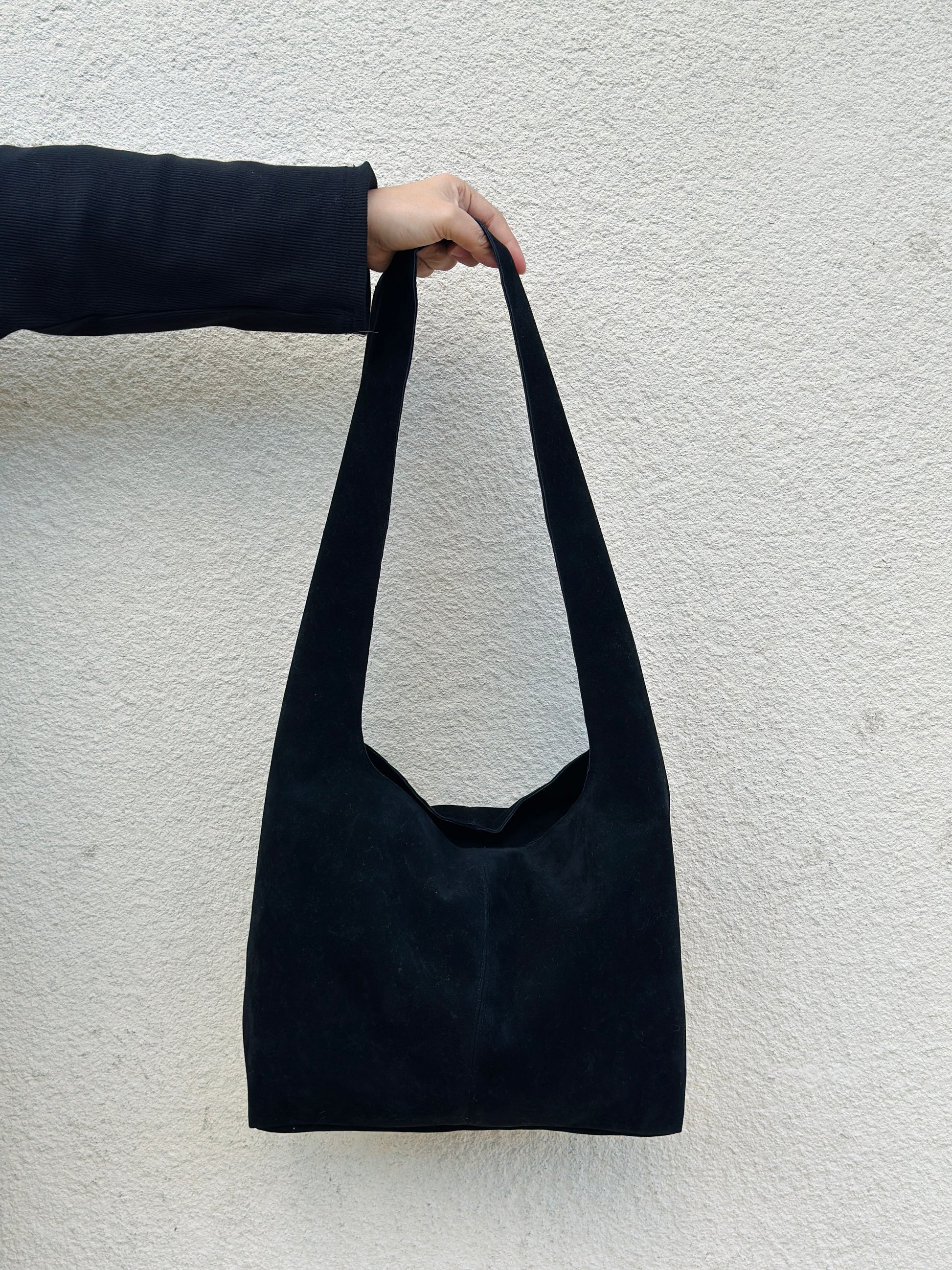 A suede shoulder bag with a clean, practical design made for everyday use.